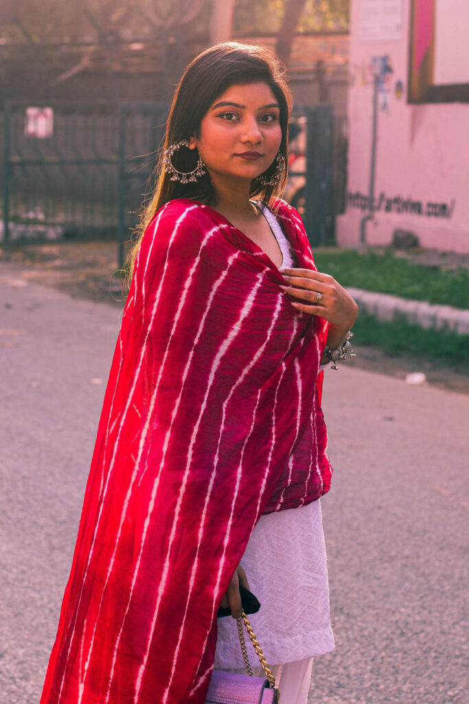 If you love patterns, try to keep them subtle or use large-scale prints. If you are unsure, it is always safest to stick to solid colors or textures that won’t compete with the subject of the photo, you.